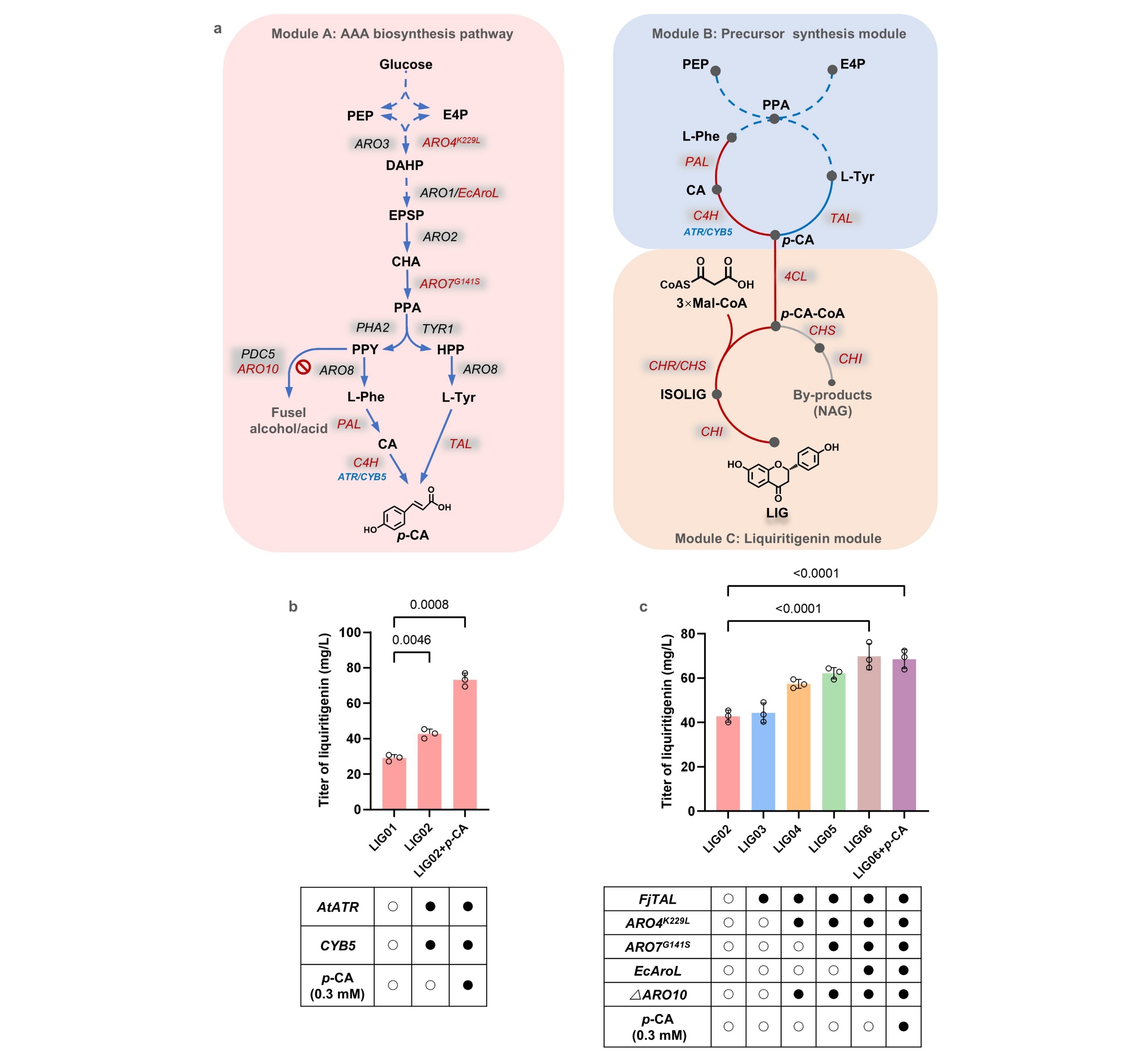 北理工生物转化与合成生物系统研究团队在微生物细胞工厂合成黄酮类药物领域取得重要进展